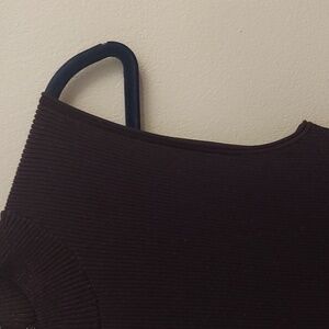 THEORY Cutout Metallic Ribbed Knit Fit-and-Flare Sleeveless Dress In Merlot in excellent condition