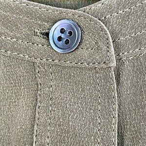 THEORY Damaris Summer Silk Tunic • Long Sleeve Mandarin Collar • L • Light Olive