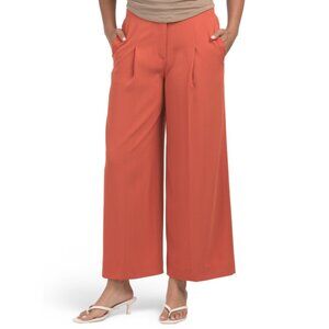 THEORY Dark Coral Pleated Wide Leg Pants In Admiral Crepe