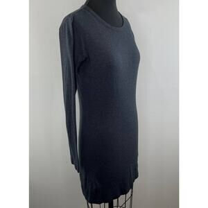 Theory Dark Gray Prima Cotton Sweater Dress Long Sleeve Scoop Neck Mini