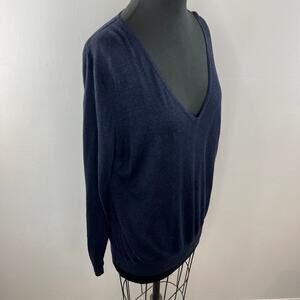 THEORY Dark Navy Blue Nautical Sag Harbor Linen Sweater V-Neck Lightweight M