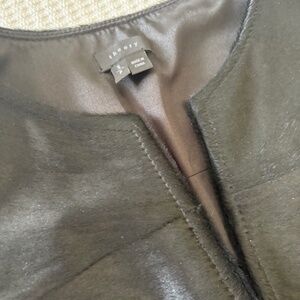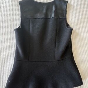 Real calf hair on the bodice ! It screams quiet luxury and elegance. Theory Etia Continuous Wool-Blend Top in black Perfect condition, never worn. Theory "Etia" top in wool-blend Continuous fabric. Caftan neckline. Sleeveless. Contouring seams. Fitted silhouette. Slight peplum hem. Hidden side zip. Measurements provided in the photos.