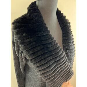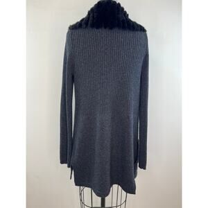 THEORY Gray Long Sleeve Maritza Fur Genuine Rabbit Collar Wool Cardigan Size L