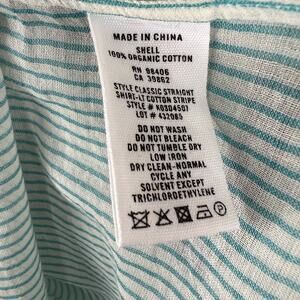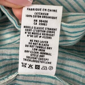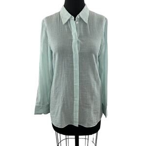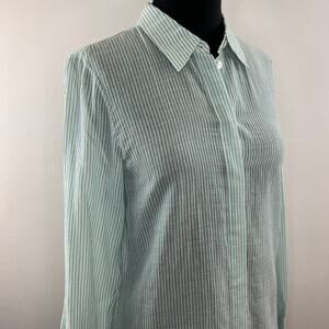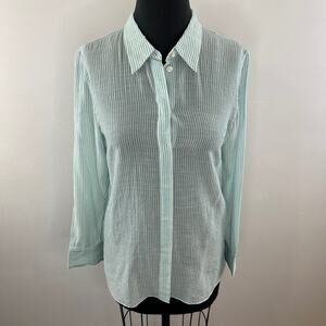 THEORY Green White Straight Shirt Organic Cotton Stripe Button-Up Long Sleeve S