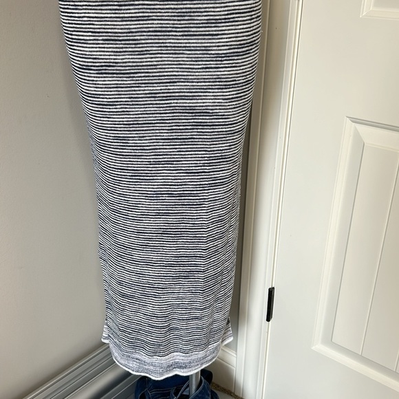 This space dye striped maxi dress feels as comfortable as pajamas but looks as conshic as a ballgown. Seam neck Sleeveless Side slits.