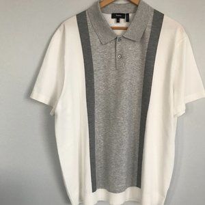 THEORY Intarsia Knit Polo. XXL. White Multi (White/Grey). Viscose/polyester/autres fibers. NWOT