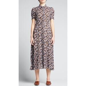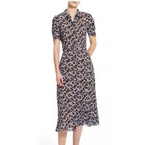 THEORY Jasper Silk Midi Shirt Dress Size 2 A-line Business Casual Short Sleeve