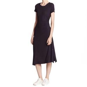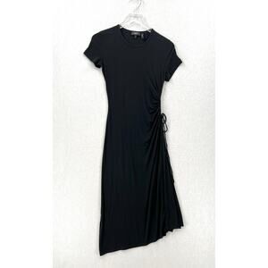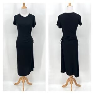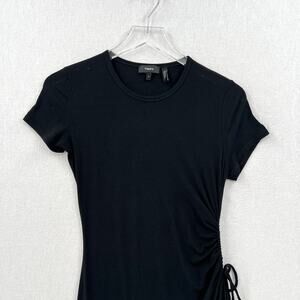 THEORY Jilaena Ruched Side Midi Tee Dress Womens S Black Crewneck Ribbed Viscose