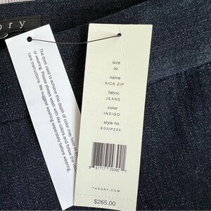 THEORY Kick Zip Indigo Blue Jeans 00 NWT