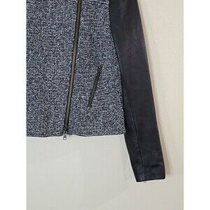 THEORY Kinde C Tweed Lambskin Leather Moto Jacket Peplum Navy Black SIZE 8 New