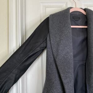 THEORY Laura Lamb Leather Wool Cashmere Coat Jacket Size XS Edgy Moto
