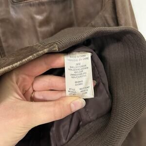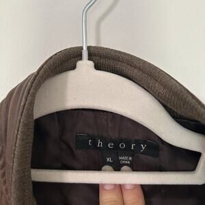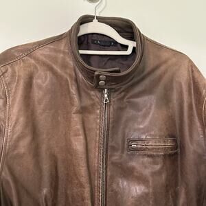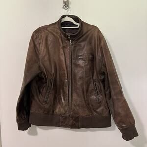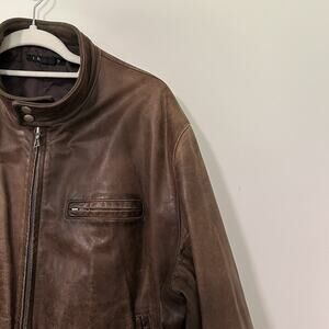 THEORY Leather Jacket Mens XL Brown Heavy Biker Rider Riding Moto Bomber