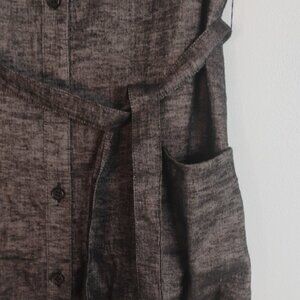 THEORY Linen Heather Gray Button Down High Slit Sides Maxi Shirt Dress Size 6