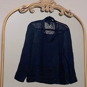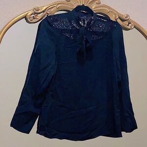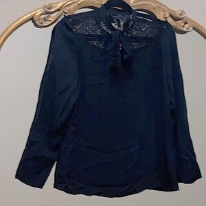 THEORY Long-Sleeve Lace Yoke Tie Neck Top Size S