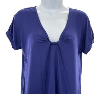 THEORY Lucella Purple Knotted V-Neckline Short Sleeve Top P