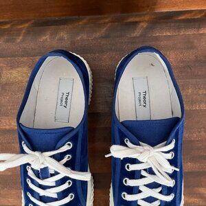 THEORY Made In Spain Velvet Lace Up Sneakers Women's Blue Low Top Sz 38