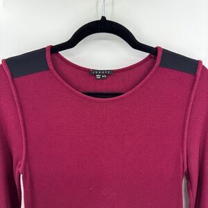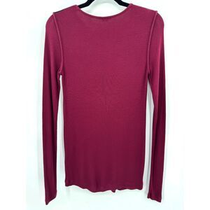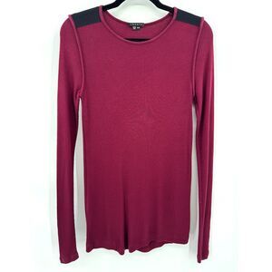 THEORY Maroon Ribbed Micromodal Shoulder Patch Long Sleeve Stretch Top Size M