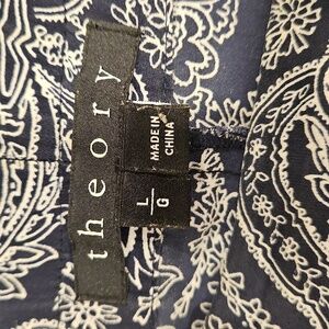 THEORY Mitrana Georgette Wide Leg Pant ~ 100% Silk Navy Blue Paisley Print Large