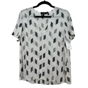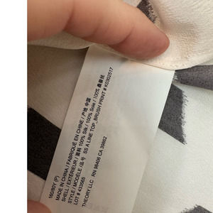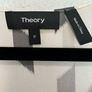THEORY NWOT $295 White Silk V Neck Blouse Bruch Print Size P US 0