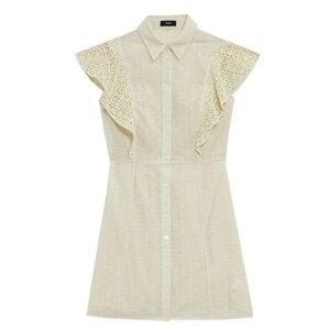 THEORY Nova Eyelet Ruffle Sleeve Button Down Mini Dress Shirtdress Size 4 NEW