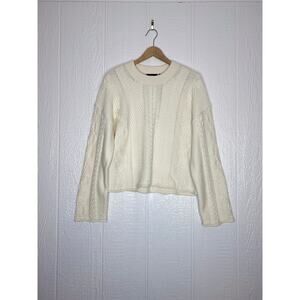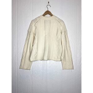 THEORY Oversized Cableknit Cream Cashmere Wool Blend Sweater US MEDIUM NWT $375