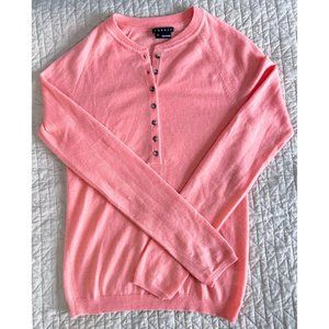 THEORY Pink Cashmere Buttoned Henley Sweater Size XS Petite EUC