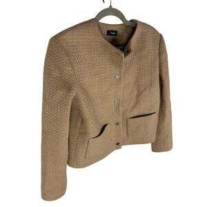 THEORY Pocket Cropped Jacket Holiday Tweed Wool Blend Quiet Luxury Classy Sz 6