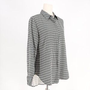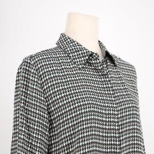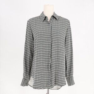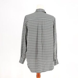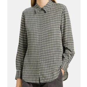 THEORY Relaxed Shirt Houndstooth Print High Low Hem Concealed Button Size S