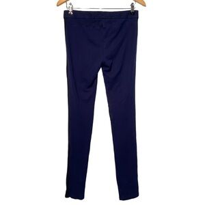 THEORY Rosamon Classical Skinny Stretch Riding Pant Navy with Black Accent 4. Stretch business casual pant has black tuxedo stripe down leg with black moto style stripe over knee. In good condition, EUC!
