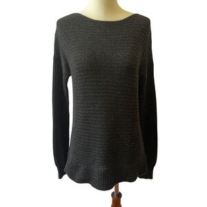 Womens size Small, charcoal gray, 100% cashmere, ribbed pattern, scoop neck, long sleeves, pullover.