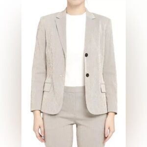 THEORY Seersucker Beige White Brown Striped Blazer Jacket Classic Sz 4 New