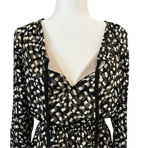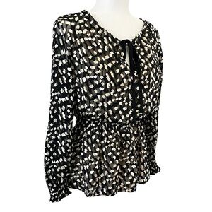THEORY Size Small Silk Blend Black Cream Burnout Print Long Sleeve Boho Top