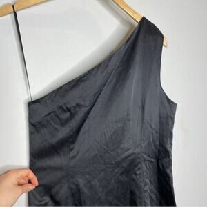THEORY Sleeveless One Shoulder Mini Dress in Black Satin