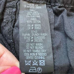 THEORY Slim Straight Linen Blend Pants Paper Bag Waist High Rise Black Size 00