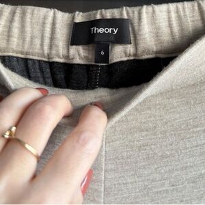 THEORY Slit Flared Demitria Pant in Double-Knit Jersey Oatmeal Size 6
