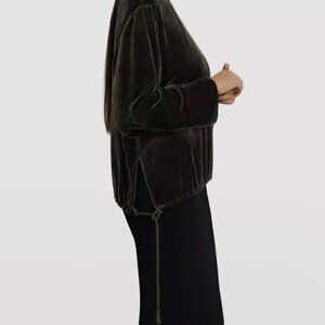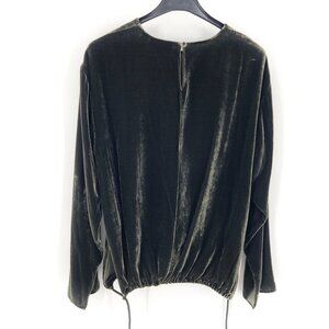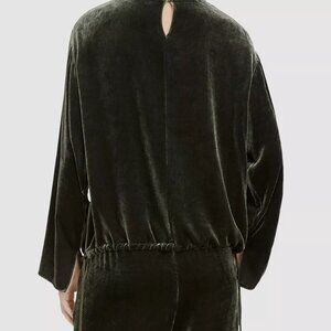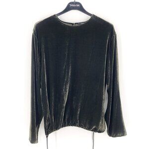 THEORY Slit Pullover Top Velvet Hunter Fixture Green Long Sleeve