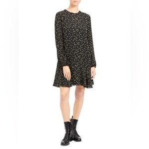 THEORY Star Print Puff-Sleeve Silk Flounce Shift Dress, size 2