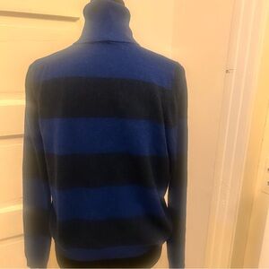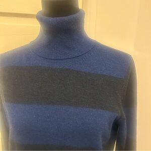 THEORY Striped Blue Turtleneck Wool Cashmere Sweater Goth Wednesday Addams Cosy