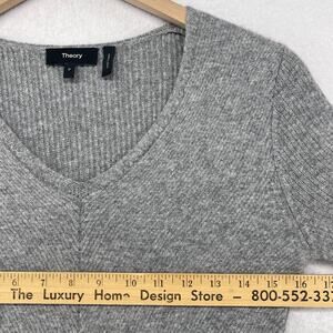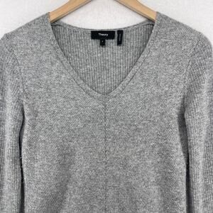 THEORY Sweater Womens Petite Cashmere V-Neck Ribbed Jumper Pullover Gray