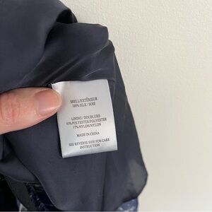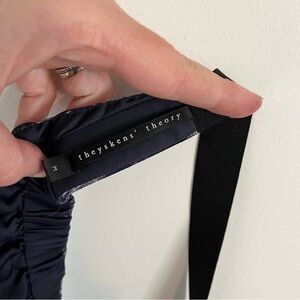 THEORY THEYSKENS' Dewi Silk Dress With Pockets. B03TT601. Sold on SHOPBOP. This print silk dress features a deep v-neck and asymmetrical hem, gathered elastic banding at waist and at open back. 1" elastic straps cross at back. Lined." 100% Silk.