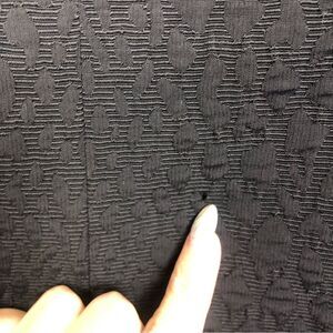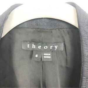 Professional but trendy solid black blazer by Theory. Animal print texture throughout. Open front. Lined. Great condition - one tiny pull on the back as shown. Womens size 6.