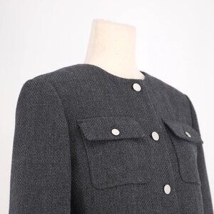 THEORY Tweed Cardigan Jacket Slightly Crop Relaxed Fit Charcoal Melange Size 6