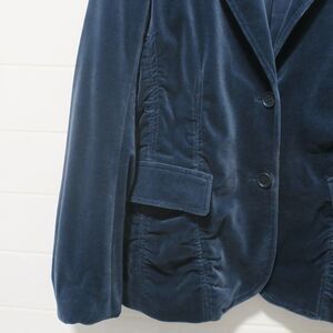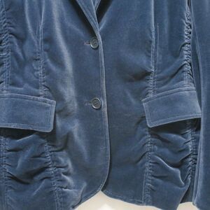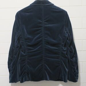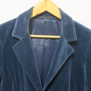 THEORY VELVET BLAZER BLUE GREY RUCHED single breast pocket LARGE lapel gather US
