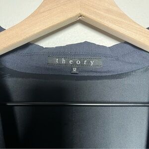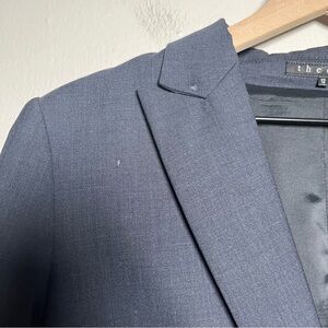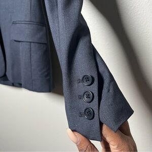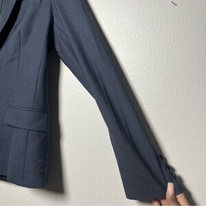 THEORY Women Wool Crepe Blazer 12 Navy Blue One Button Office Business