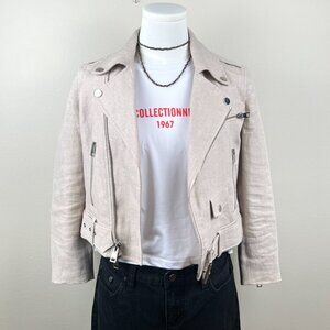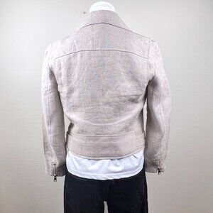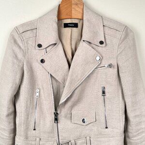 THEORY Women’s Linen Belted Shrunken Motorcycle Jacket - Beige. Size: XS