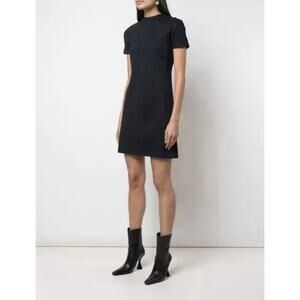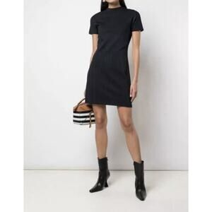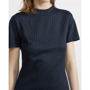 THEORY Women`s Navy Blue Stripe Midi Short Sleeve Shift Dress / Size Large