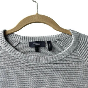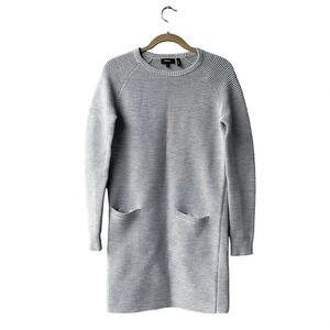 THEORY Women’s Noble Sweater Dress Light Gray Ribbed Knit Crew-neck Wool Blend S