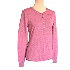 THEORY Wool Henley Sweater Sz.M Pointelle Knit Pink Preppy Lightweight Cottage