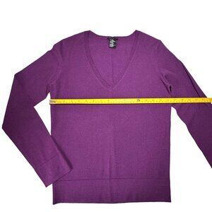 THEORY Wool Sweater Sz.M Fine Gauge Purple V-Neck Minimalist Career Classic