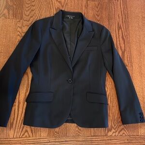 THEORY woman’s black blazer STRETCH WOOL Blend one button closure SMALL 10 (6-8)